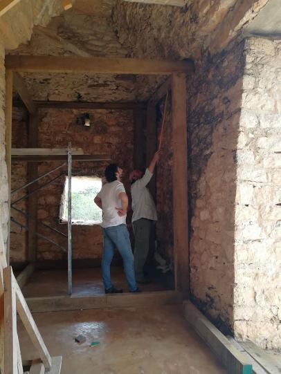 COMENZANDO EL TRABAJO DE APUNTALAMIENTO EL LIC MARIO MANZANILLA DE DUMEX Y EL LIC ILAN VIT DEL INAH