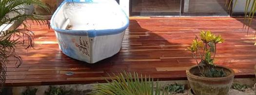 DECK DE MADERA DURA DE LA REGION, CON ZOCLO Y ACABADO ESPECIAL PARA MADERA DE EXTERIOR.
